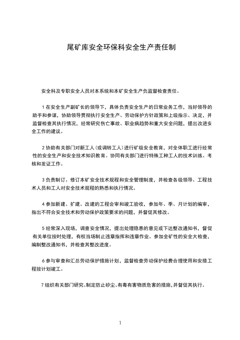 安全科及专职安全人员对本系统和本矿安全生产负监督检查责任。