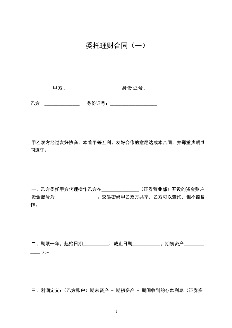 二、期限一年,起始日期___________,截止日期____________,期初资产_____________ 元。
