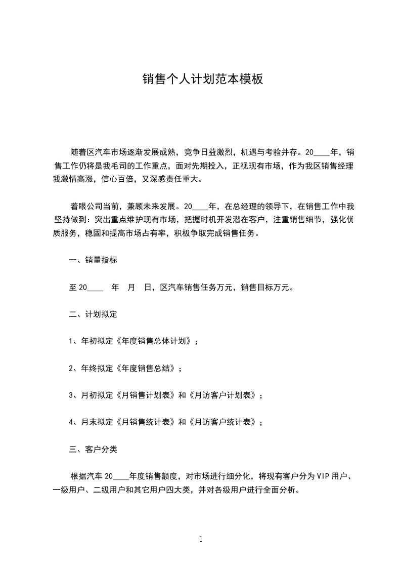 3、月初拟定《月销售计划表》和《月访客户计划表》;