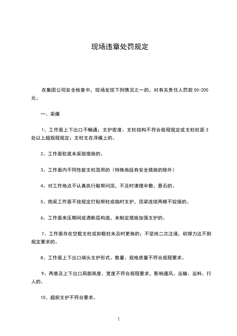4、对工作地点不认真执行敲帮问顶,不及时清理伞檐、悬石的。