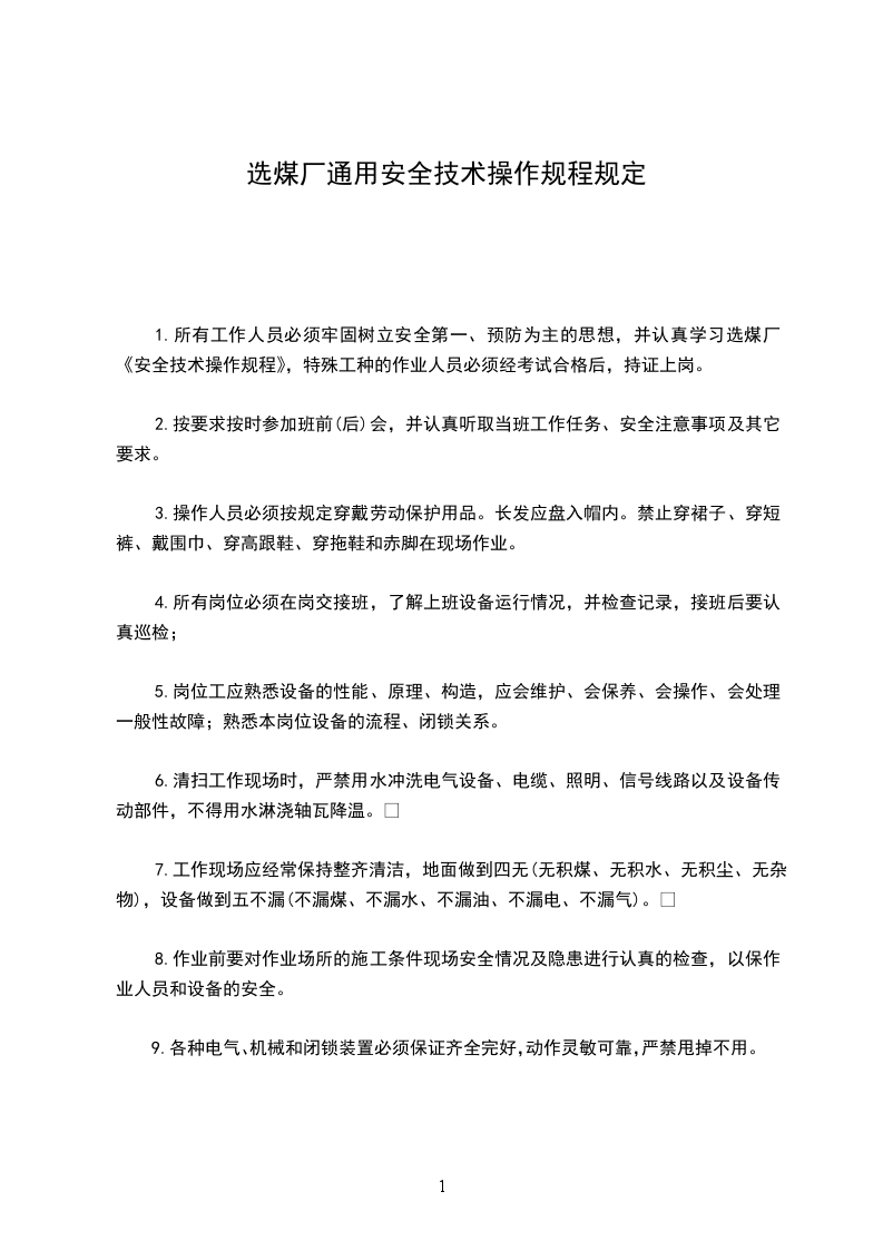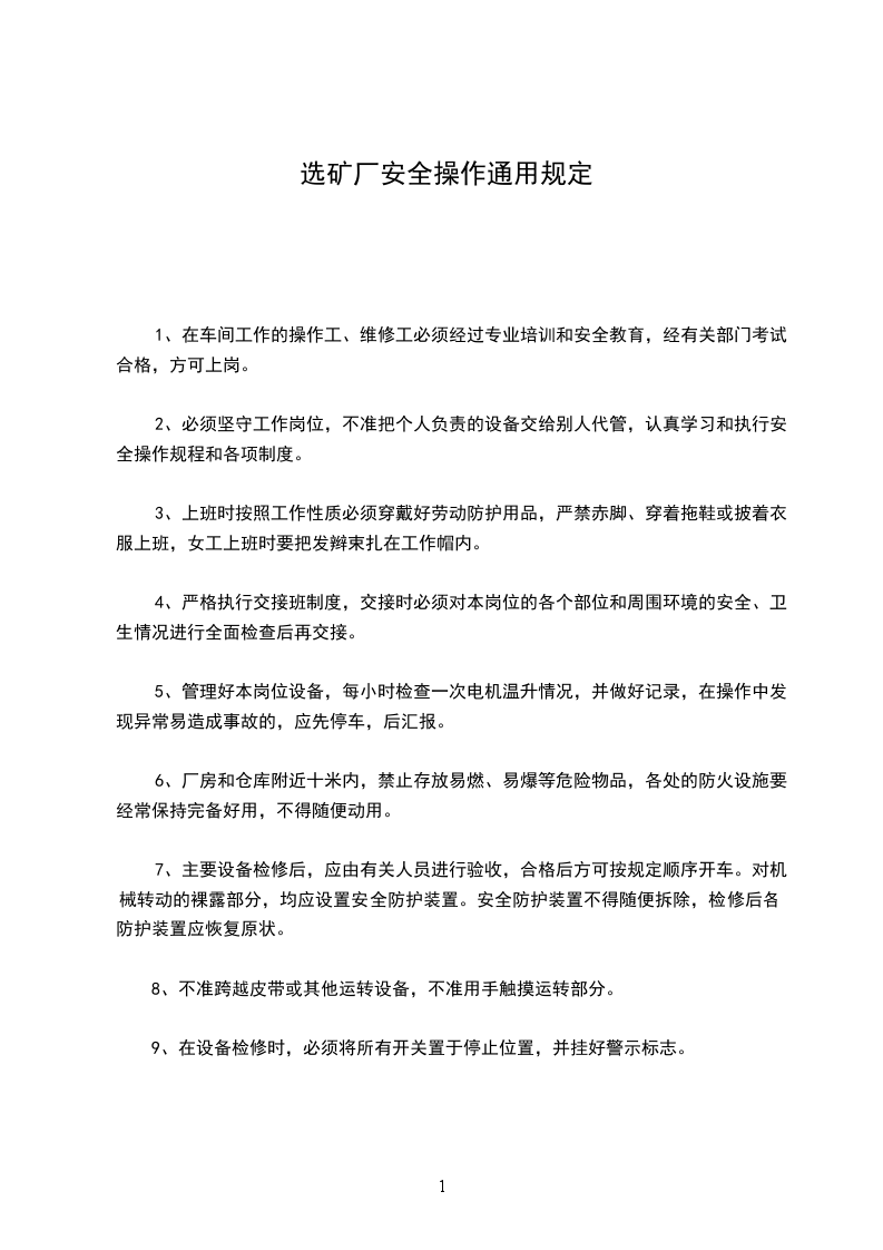 1、在车间工作的操作工、维修工必须经过专业培训和安全教育,经有关部门考试合格,方可上岗。