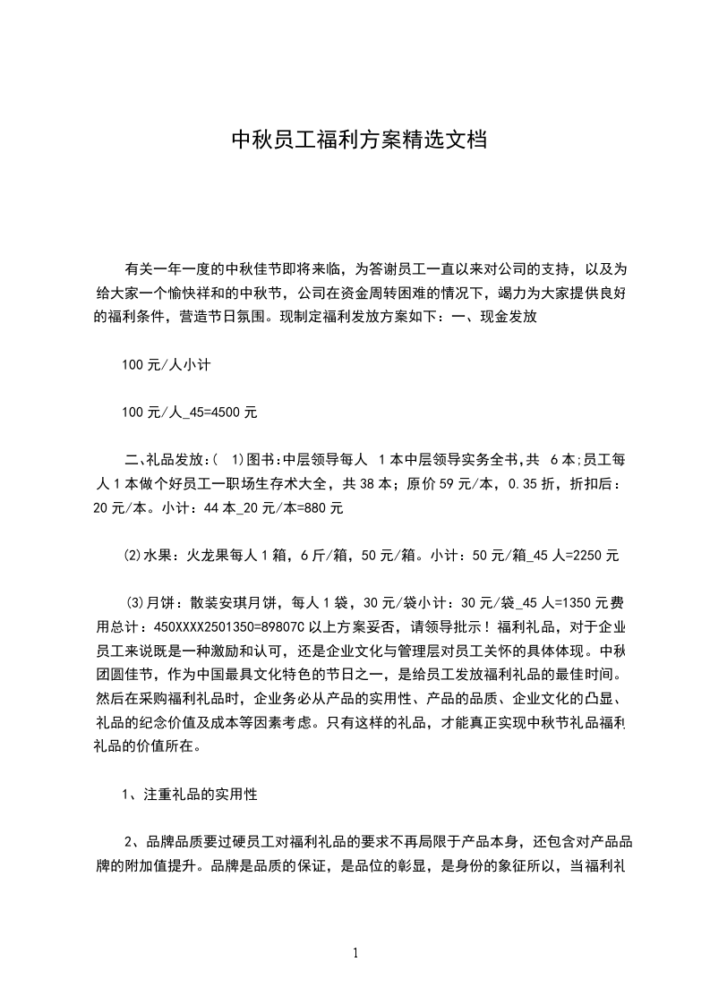 中秋佳节即将来临,为体现公司对员工的关怀,使员工感受到节日的欢乐气氛,行政人事部拟给公司全体员工发放中秋节福利。按照年度财务预算,制定如下方案: