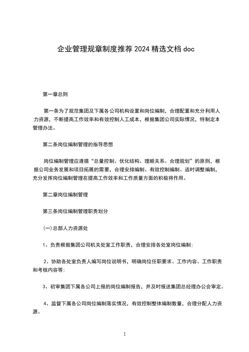 1、负责根据集团公司机关处室工作职责,合理安排各处室岗位编制;
