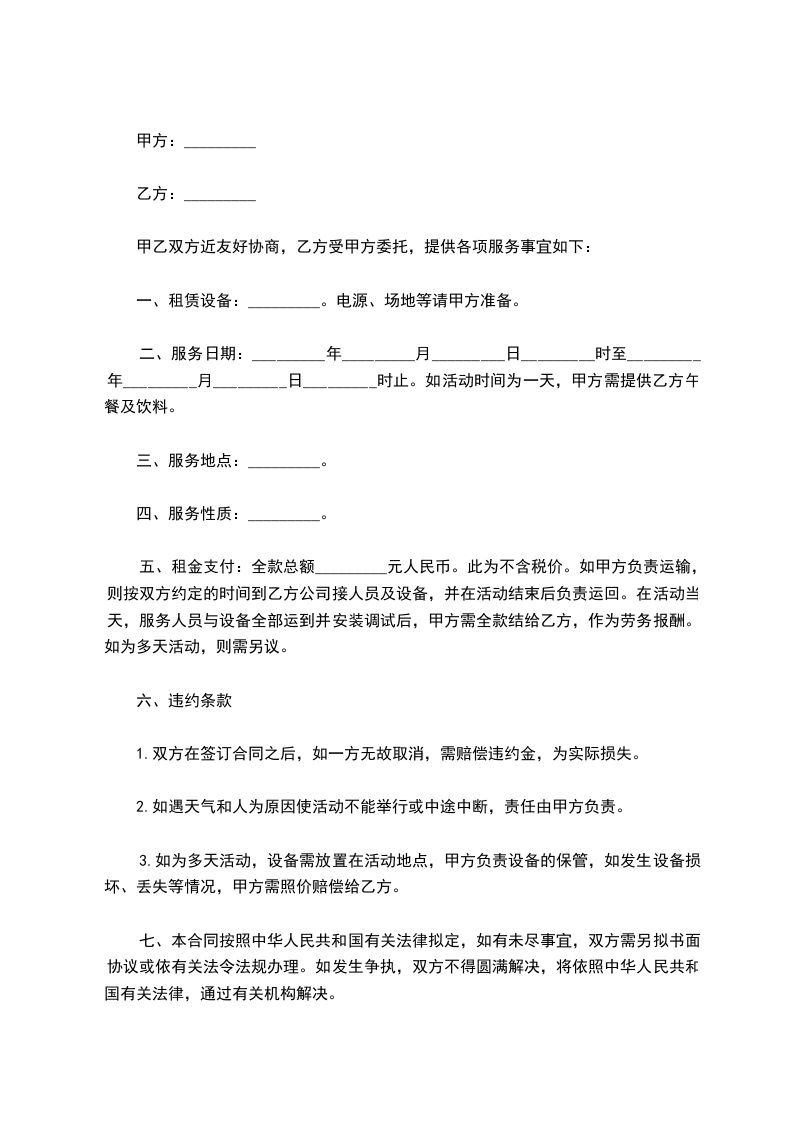 10、乙方在租棚及器材时,应提前三天向甲方预定。如有变化应及时通知甲方。