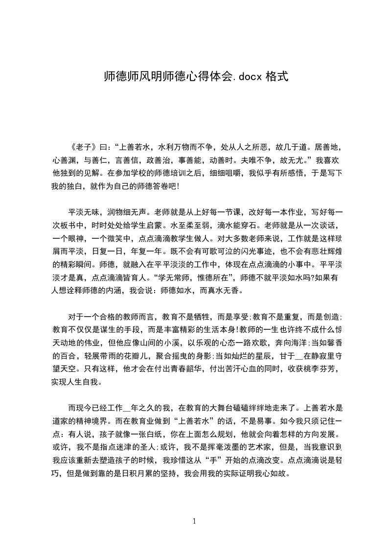 教师应重视自身的道德形象,追求人格完美,重视教师职业的特质修养和个性魅力,有更高的人文目标。教师的一言一行,都无时无刻不在影响着学生,教育着学生。当我们的老师用自己的行动给学生作出表率时,也同时给学生指明了行动的方向。教师要严格要求自己,自觉遵守学校的规章制度和有关规定,以身作则,洁身自好,以德服人,以身立教,为学生树立起楷模的形象。教师要具有高度的工作责任感。一名称职的教师要以对社会、对家长、对学生高度负责的精神,努力做好教书育人过程中每个环节的工作。教育的神圣还在于在我们塑造学生灵魂的同时,也在塑造自我的灵魂,并不断提升自己的人生境界。这恐怕是其他任何职业所无法比拟的。的确,在一个个鲜活的孩子面前,只有不断地提高、完善自己,才能够让自己在“教师”这个称号面前毫无愧色。