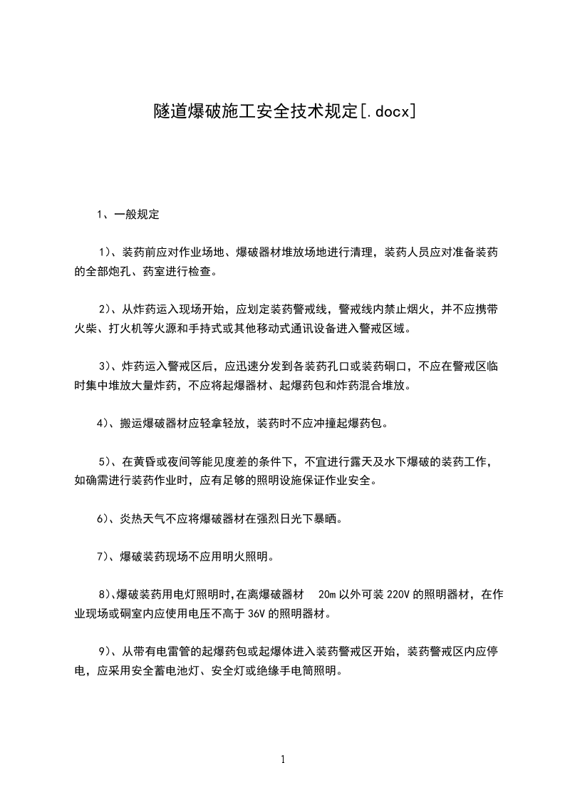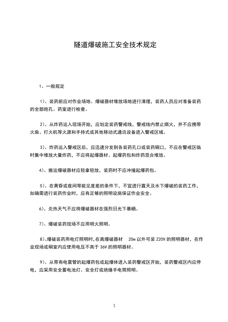 1、装药前必须设置警戒区,并由专人负责警戒,核对爆孔与炸药、雷管类型与数量。