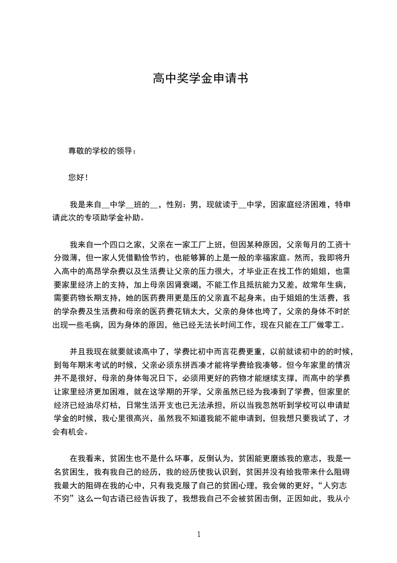我是一名来自__县的一个小山村的学生,现就读于咱们__中学高三(1)班,综合自身实际情况,特向组织提出“优秀学生助学金”的申请,肯请学校可以核对并给予批准。