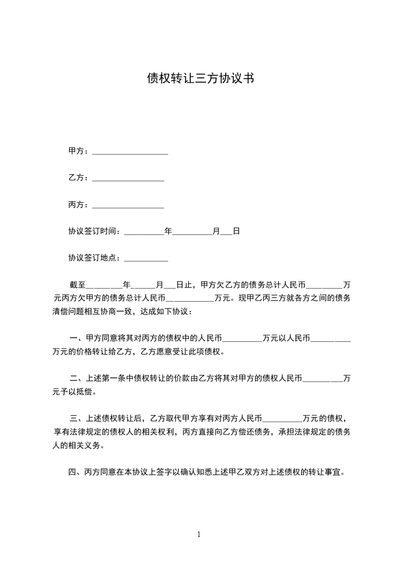 为妥善解决乙、丙双方的债权债务问题,甲、乙、丙三方经协商,依法达成如下债权转让协议,以资信守: