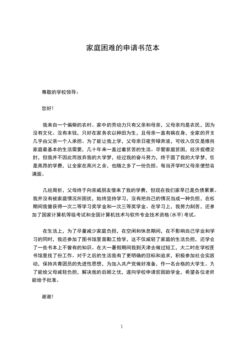 我是高一(x)班的xx,因家庭原因,现申请获得今年国家贫困生补助金,希望学校能予批准。