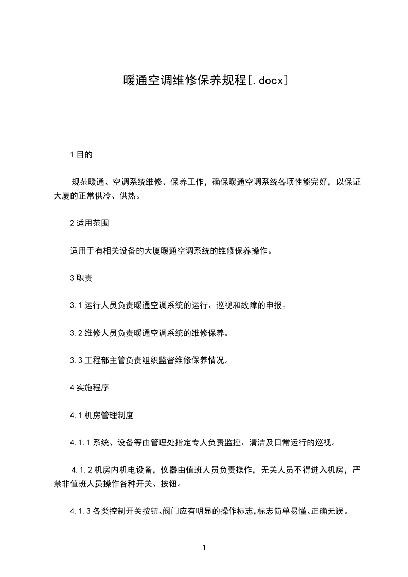 规范暖通、空调系统维修、保养工作,确保暖通空调系统各项性能完好,以保证大厦的正常供冷、供热。