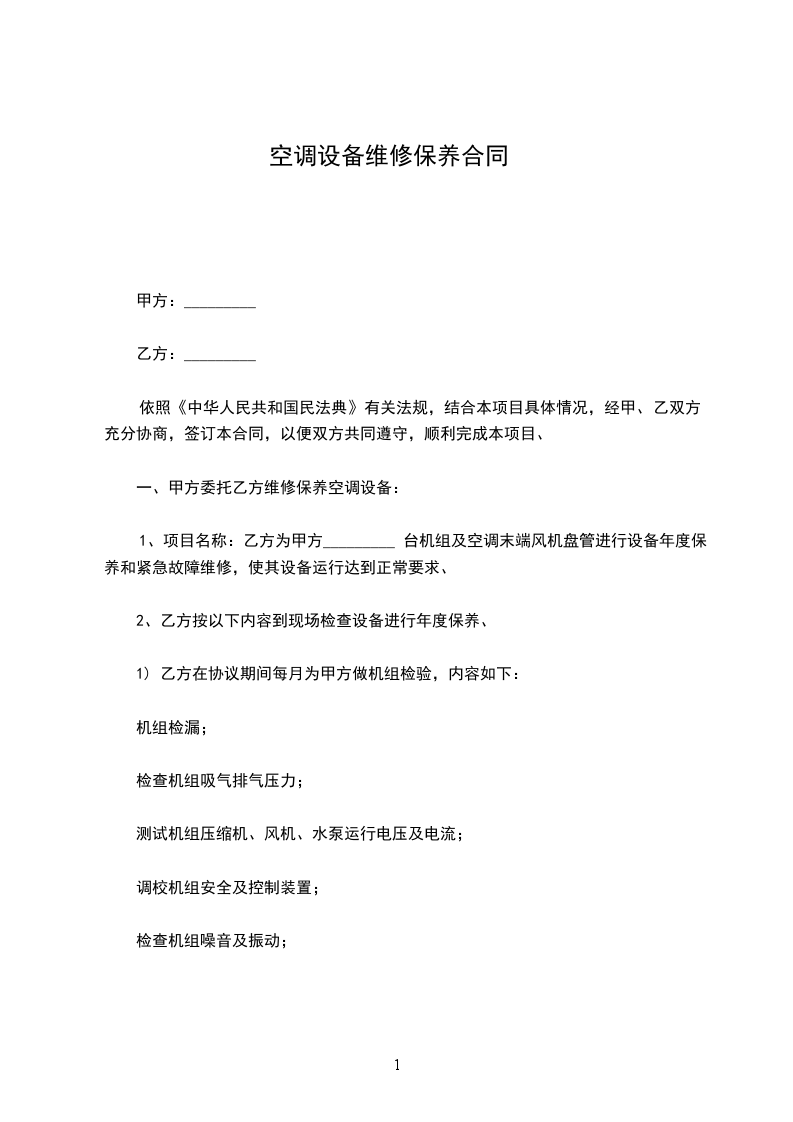 适用于有相关设备的大厦暖通空调系统的维修保养操作。
