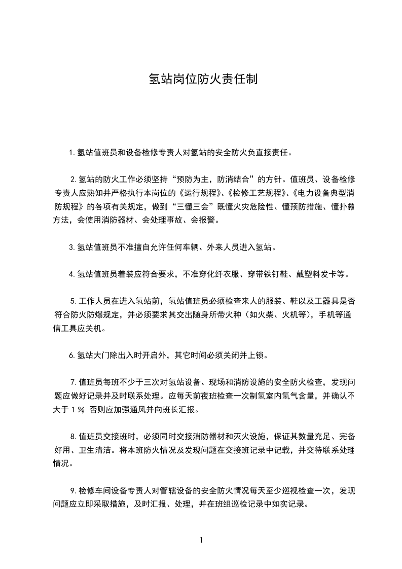 1.氢站值班员和设备检修专责人对氢站的安全防火负直接责任。