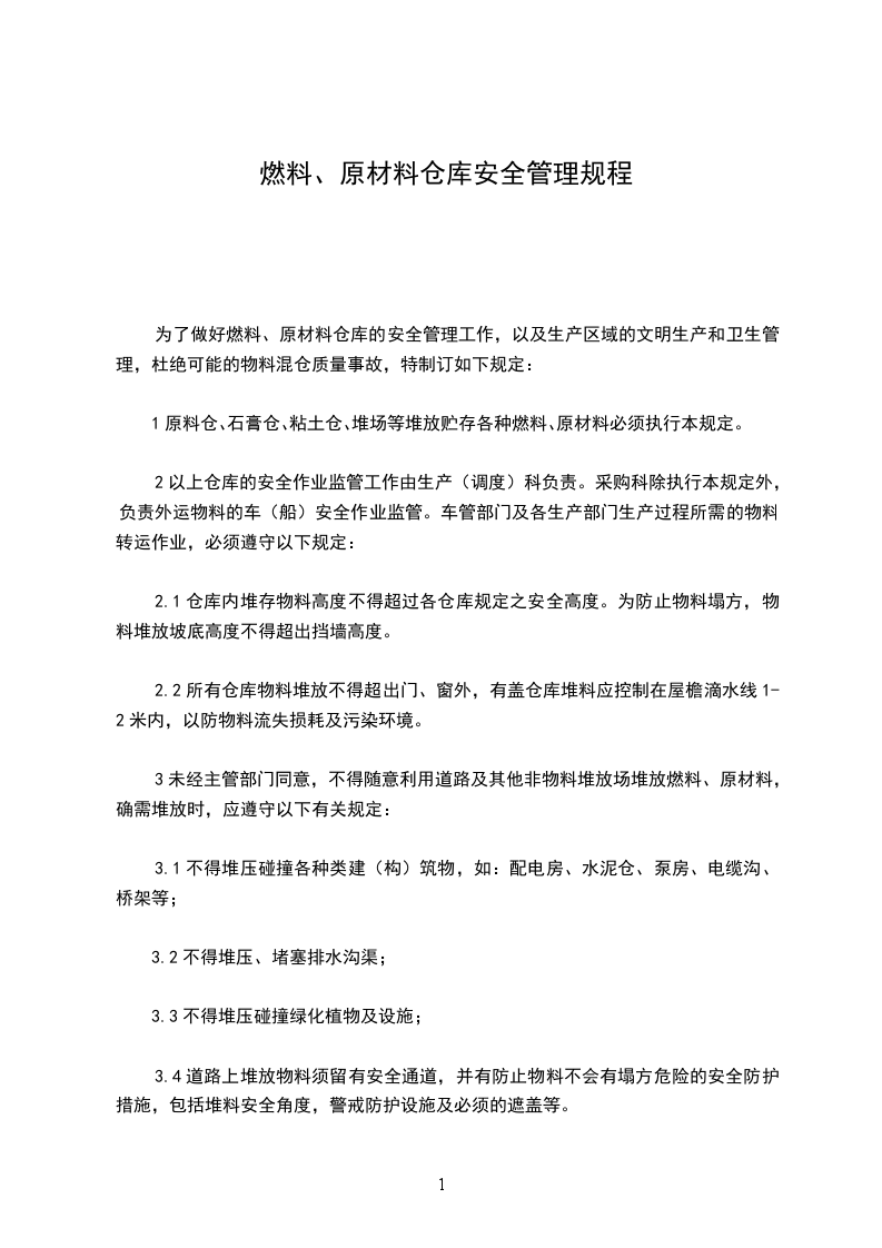 1原料仓、石膏仓、粘土仓、堆场等堆放贮存各种燃料、原材料必须执行本规定。