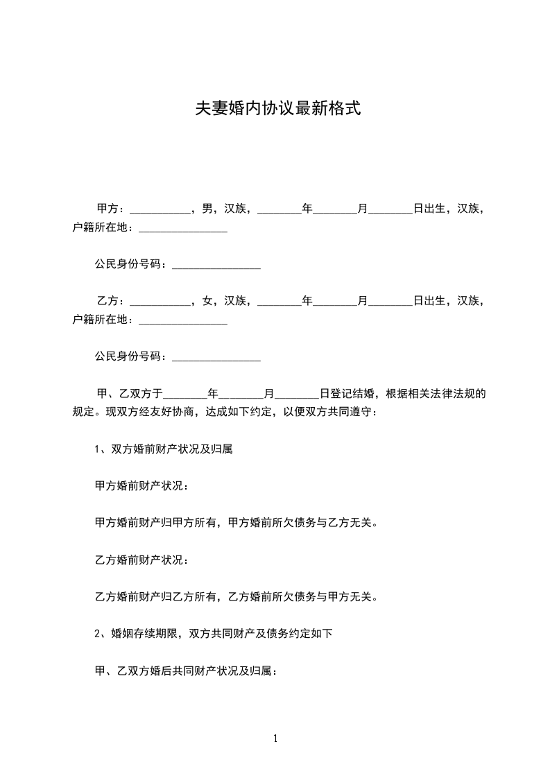 甲、乙双方于________年________月________日登记结婚,根据相关法律法规的规定。现双方经友好协商,达成如下约定,以便双方共同遵守: