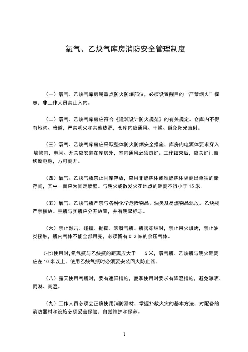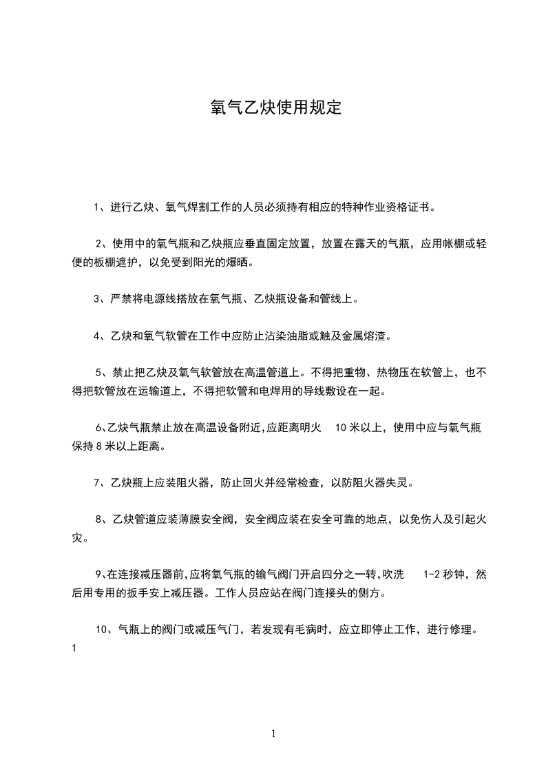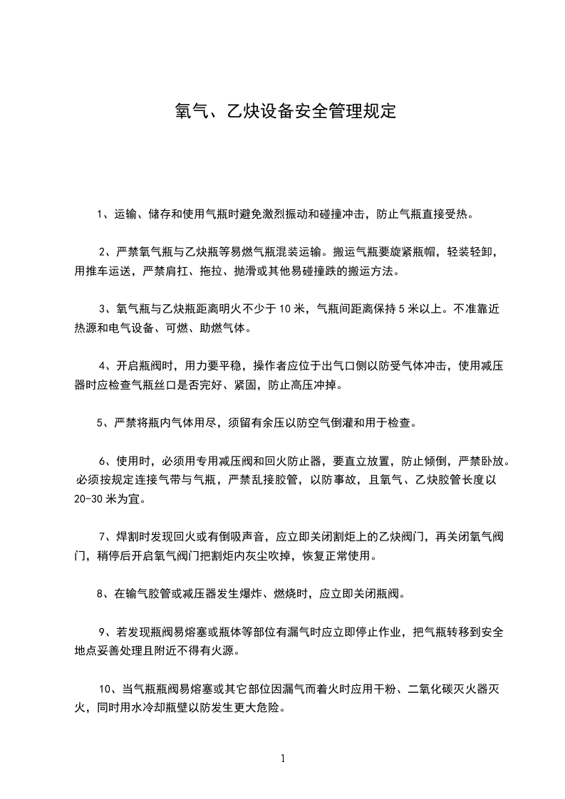 3、氧气瓶与乙炔瓶距离明火不少于10米,气瓶间距离保持5米以上。不准靠近热源和电气设备、可燃、助燃气体。