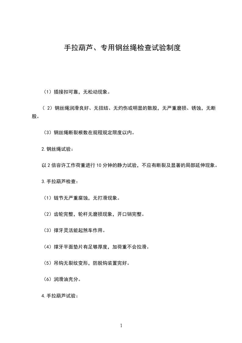 5.试验时一次只允许挂一个手拉葫芦,禁止串挂试验。
