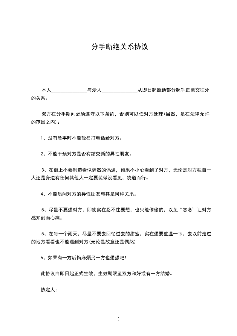 10、本协议书壹式贰份,甲乙双方各执壹份,于双方签字或盖章之日起生效。
