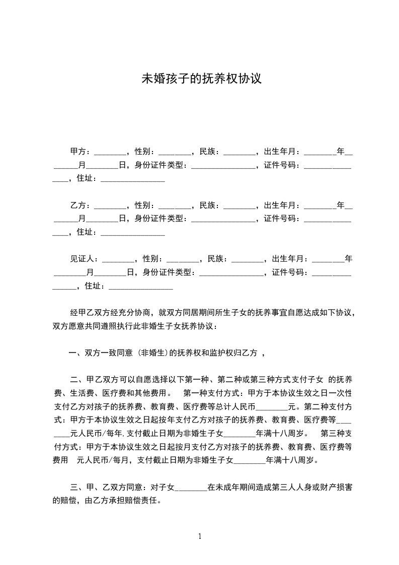未婚孩子的抚养权协议书