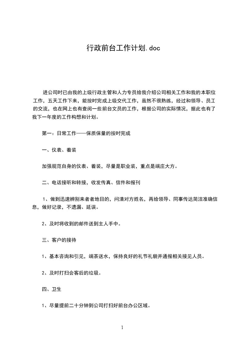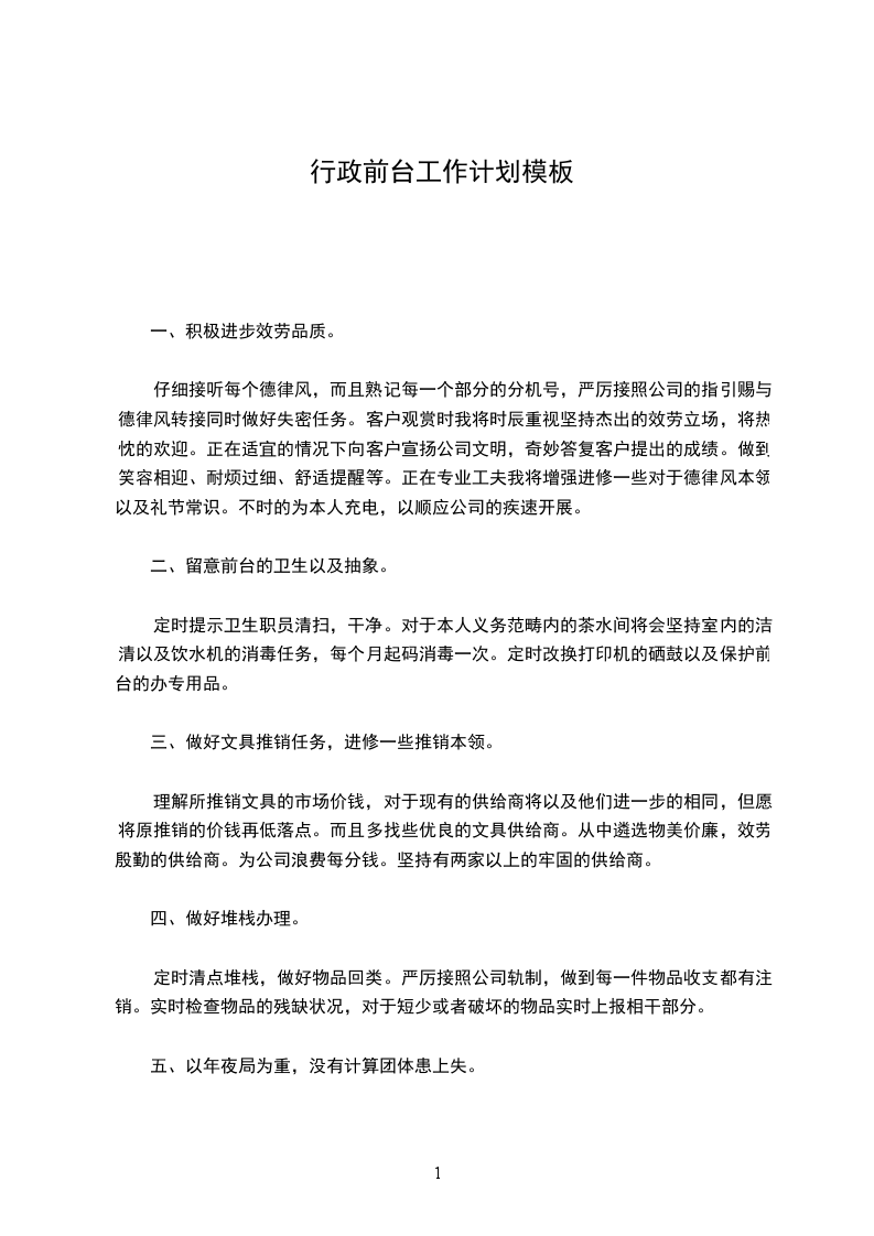 定时提示卫生职员清扫,干净。对于本人义务范畴内的茶水间将会坚持室内的洁清以及饮水机的消毒任务,每个月起码消毒一次。定时改换打印机的硒鼓以及保护前台的办专用品。