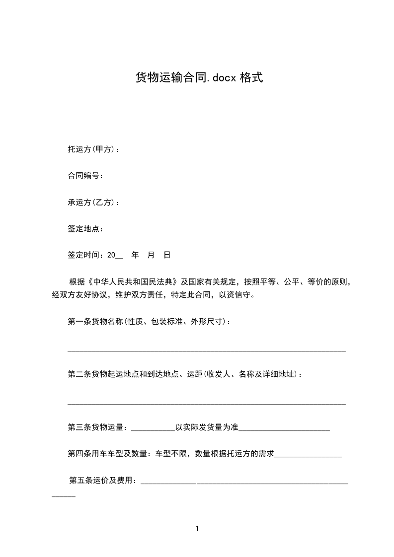 第四条用车车型及数量:车型不限,数量根据托运方的需求_________________