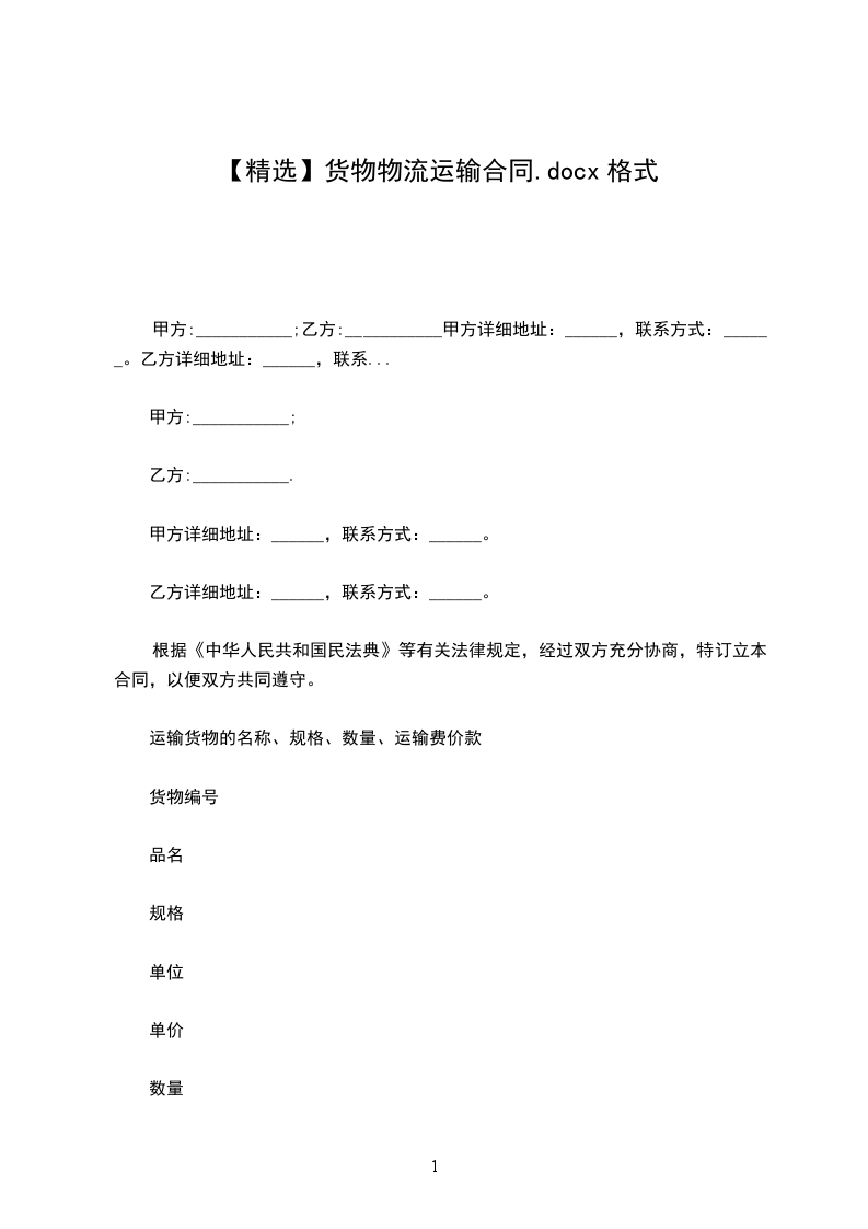 托运方(甲方):承运方(乙方):