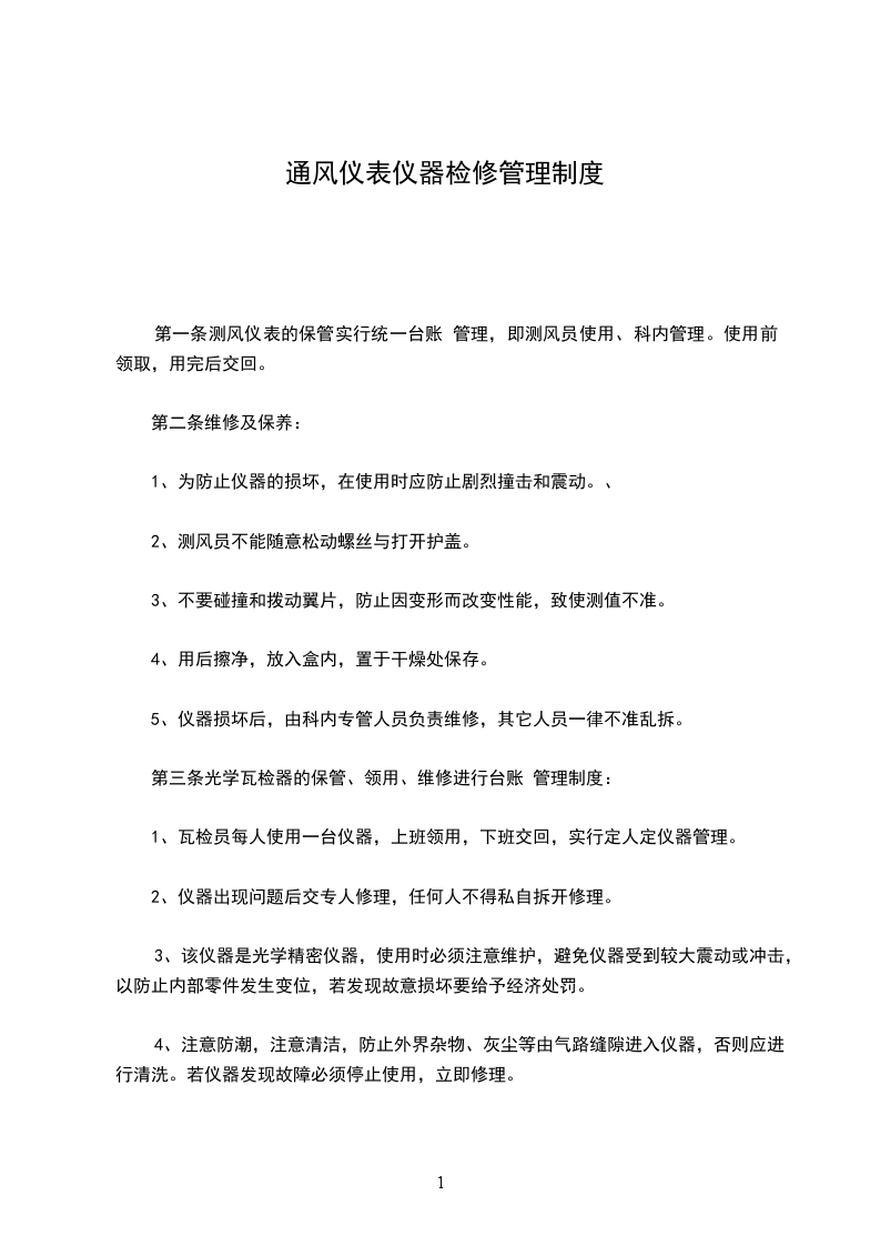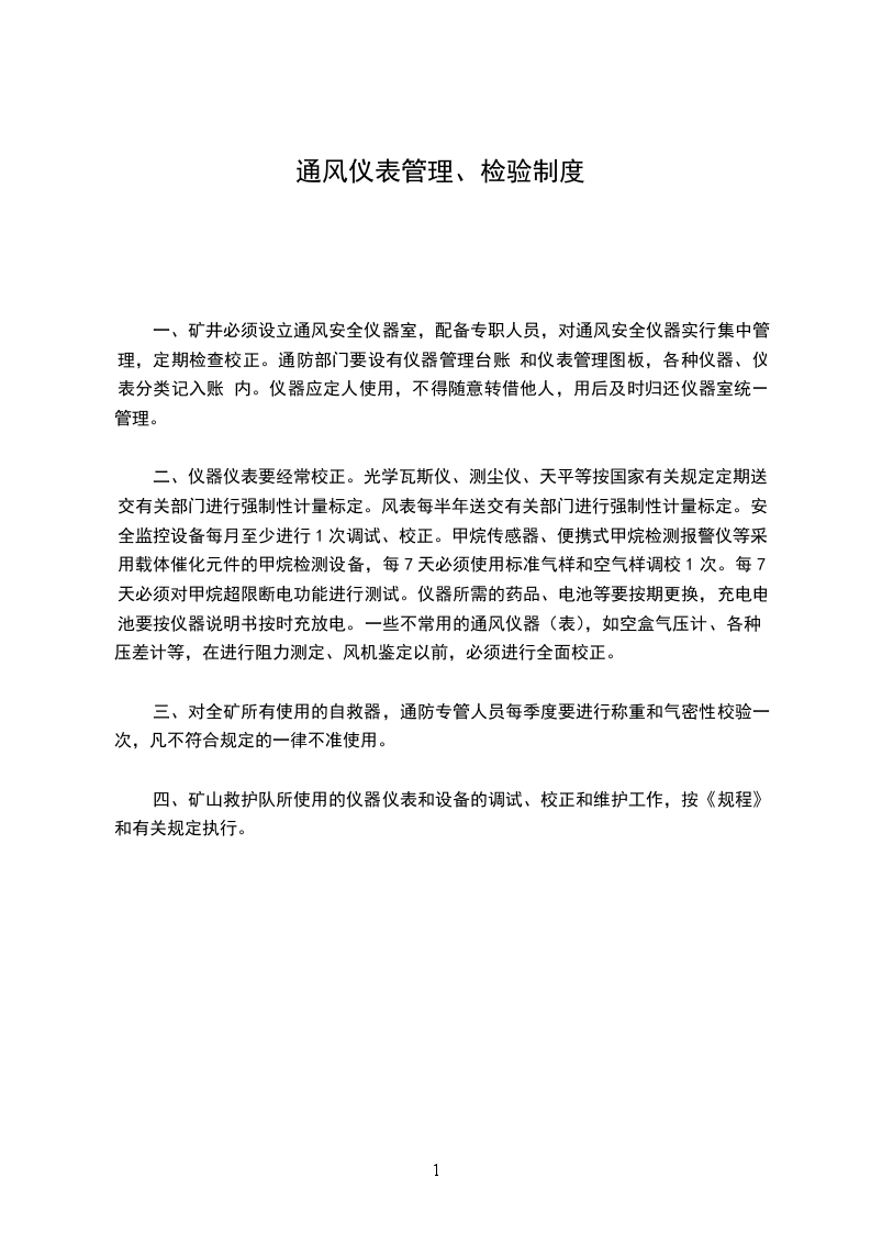 1、要制定本矿通风仪器仪表使用管理制度,明确职责,规范管理。