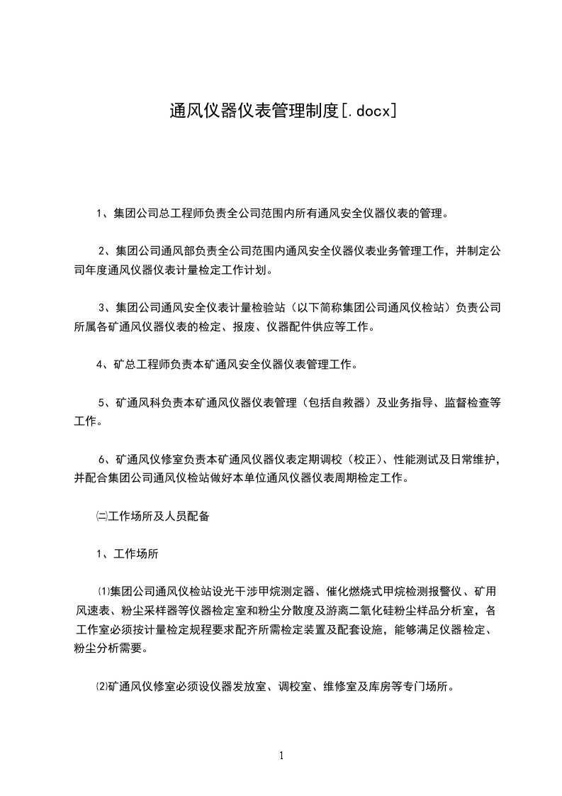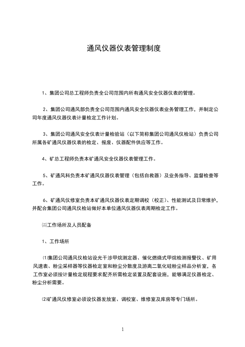 1、集团公司总工程师负责全公司范围内所有通风安全仪器仪表的管理。