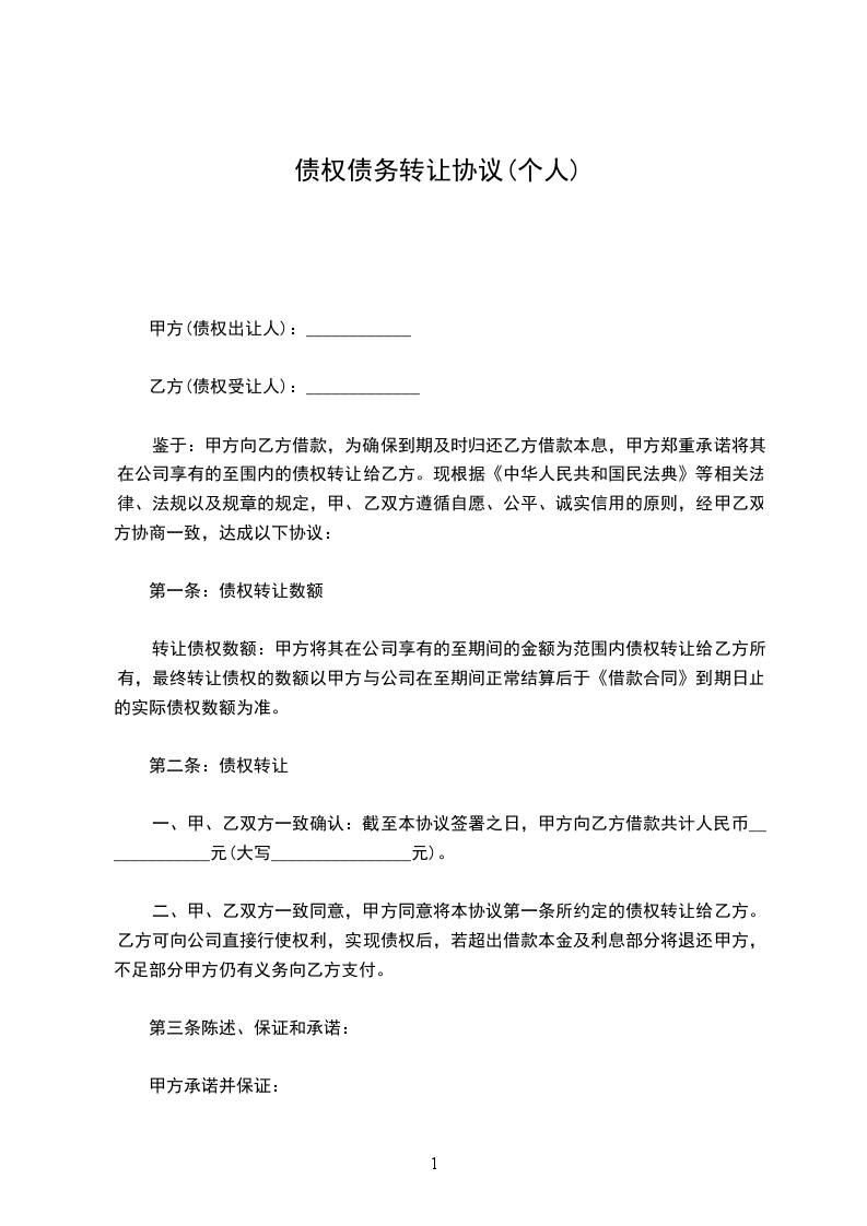 三、上述债权转让后,乙方取代甲方享有对丙方人民币_________________万元的债权,享有法律规定的债权人的相关权利,丙方直接向乙方偿还债务,承担法律规定的债务人的相关义务。