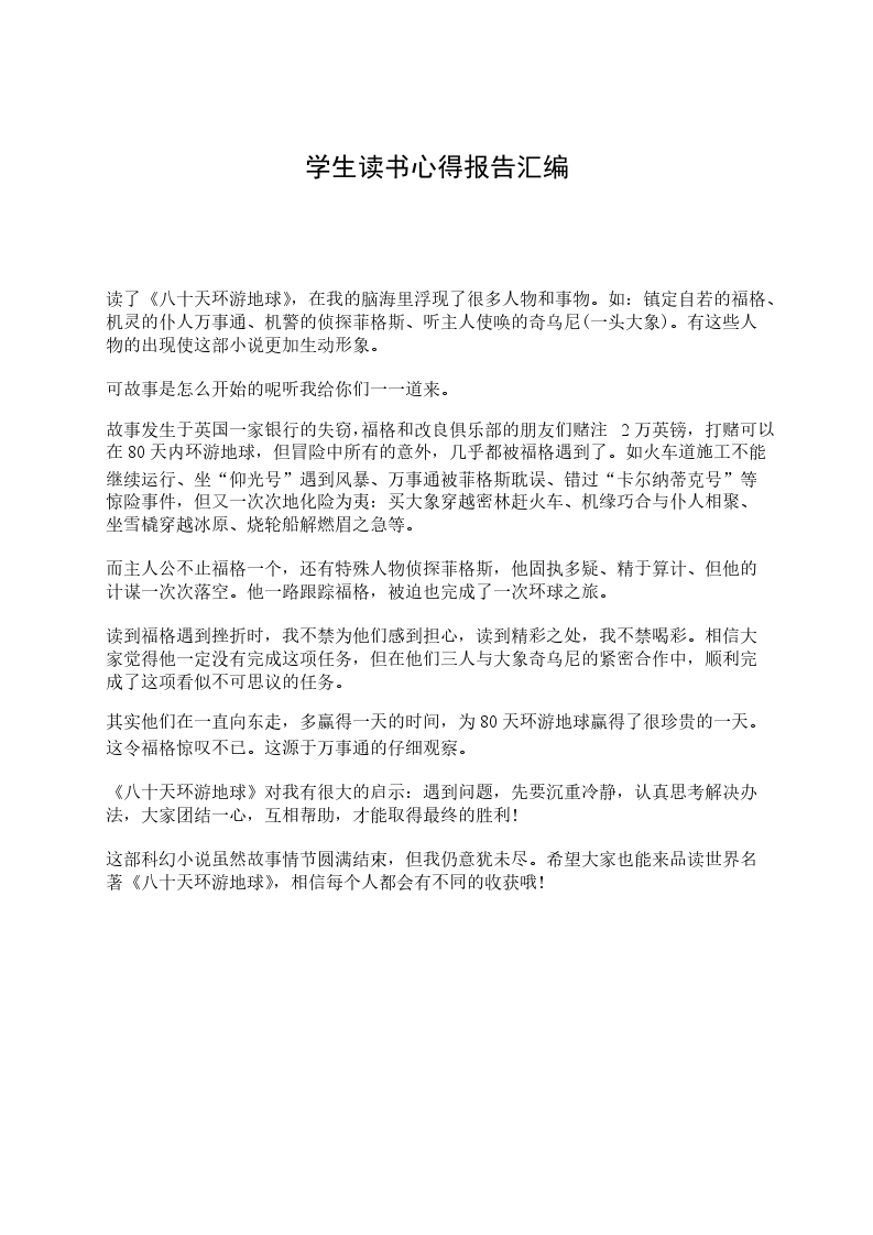 《八十天环游地球》对我有很大的启示:遇到问题,先要沉重冷静,认真思考解决办法,大家团结一心,互相帮助,才能取得最终的胜利!
