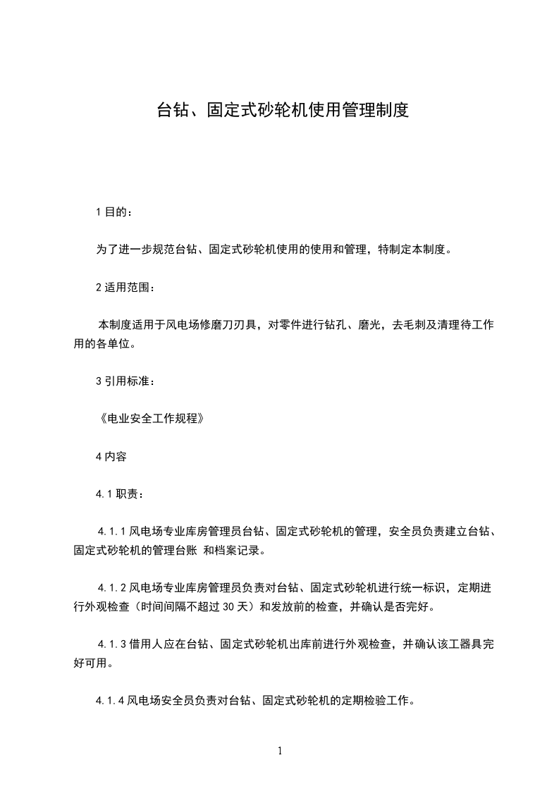 为了进一步规范台钻、固定式砂轮机使用的使用和管理,特制定本制度。