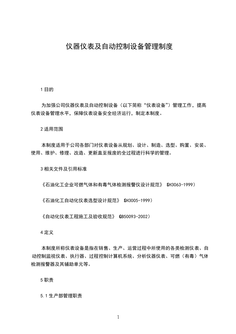 3.1生产技术部负责仪器仪表设备安全管理工作。