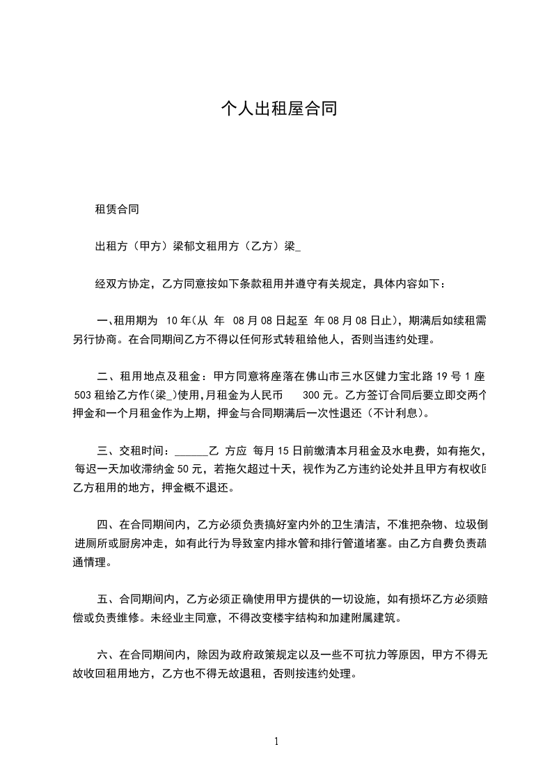 6.乙方入住该物业应保持周围环境整洁做好防火防盗工作,如发生事故乙方应负全部责任;