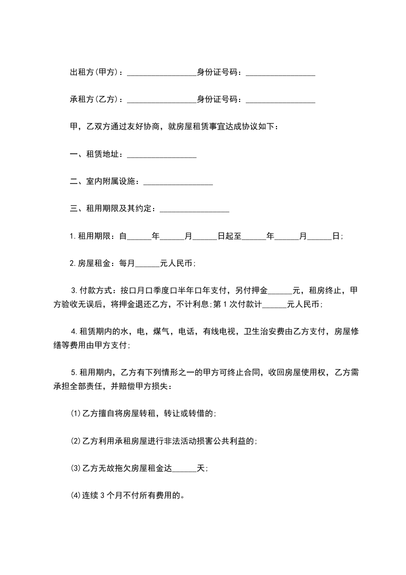 5.租用期内,乙方有下列情形之一的甲方可终止合同,收回房屋使用权,乙方需承担全部责任,并赔偿甲方损失: