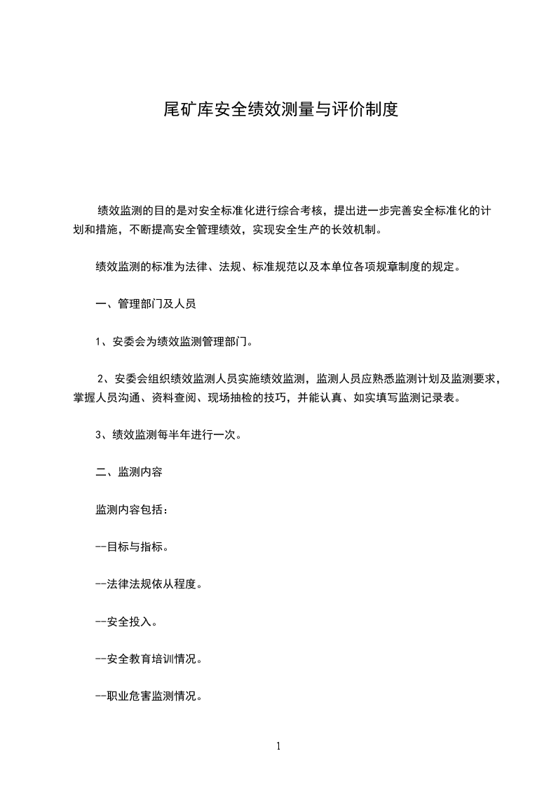 1、安委会为绩效监测管理部门。
