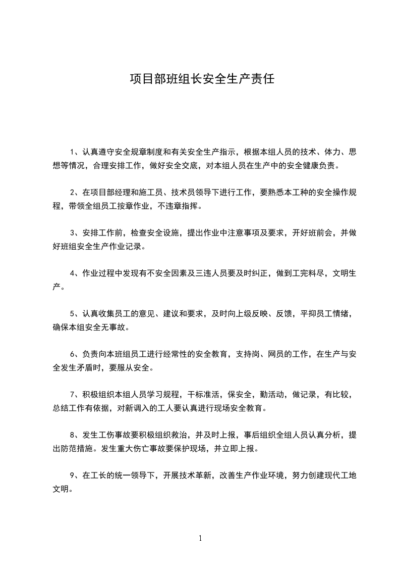 1、认真遵守安全规章制度和有关安全生产指示,根据本组人员的技术、体力、思想等情况,合理安排工作,做好安全交底,对本组人员在生产中的安全健康负责。