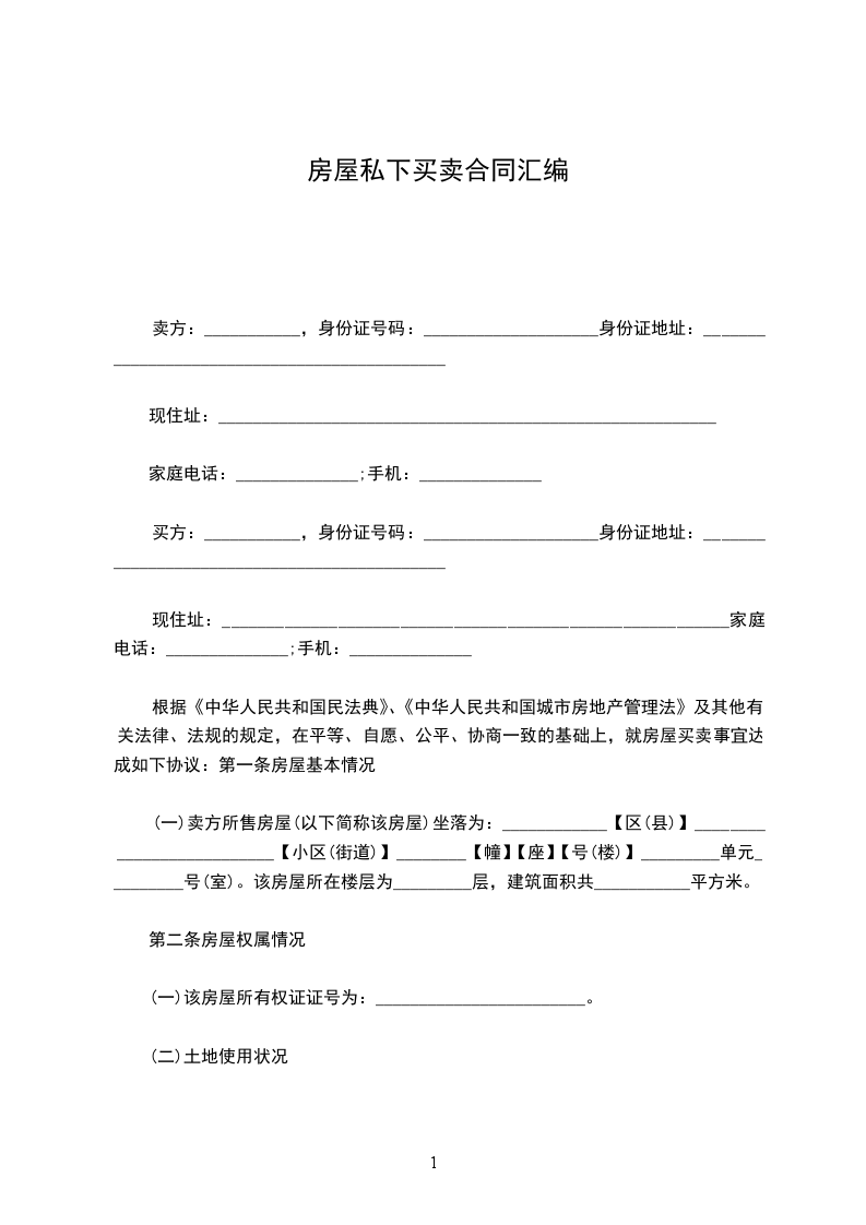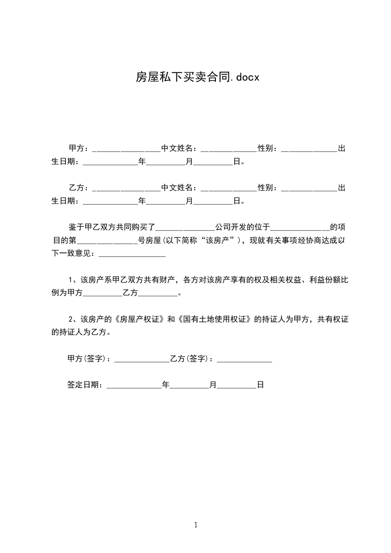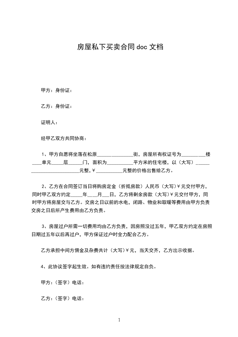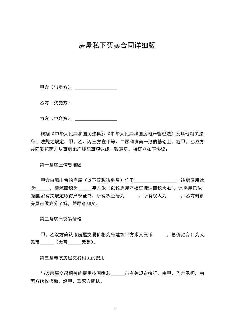最新私下房屋买卖协议范文