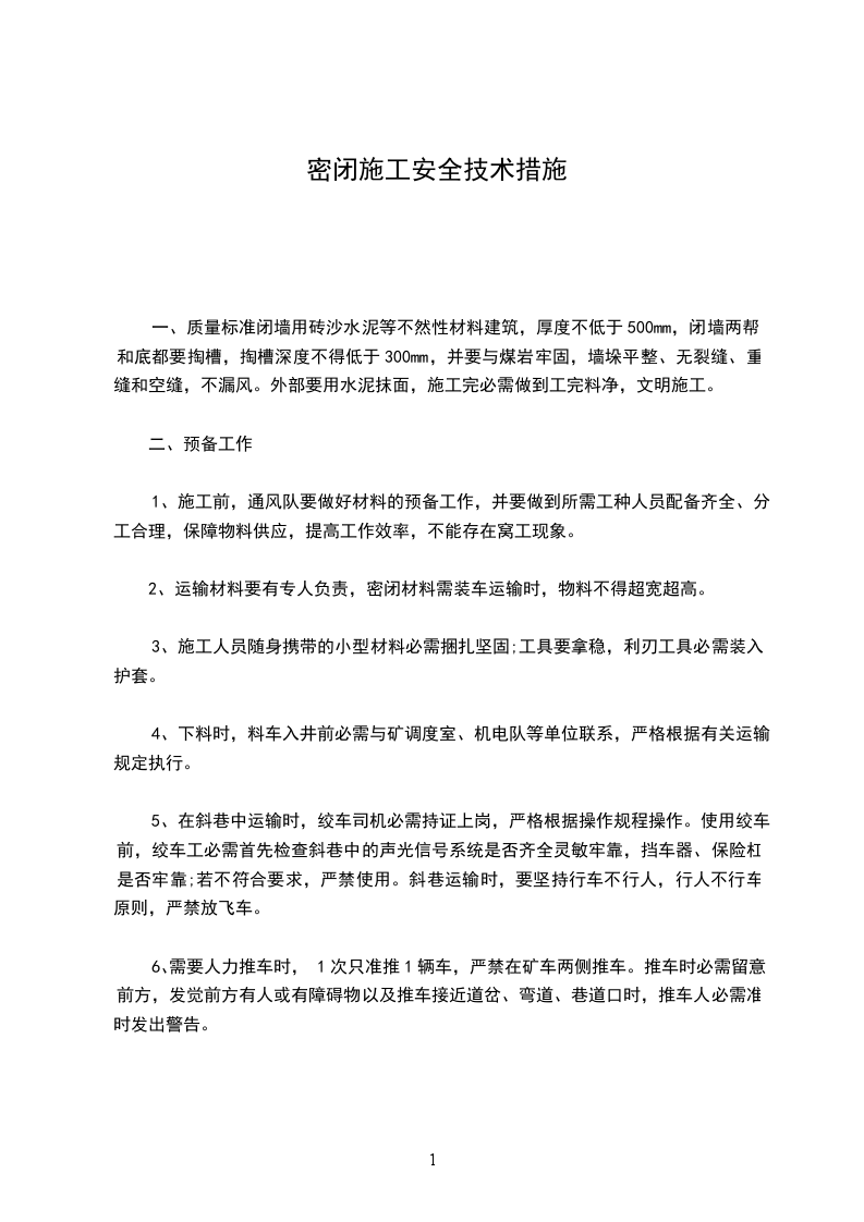 (1)启封密闭必须制定安全技术措施。