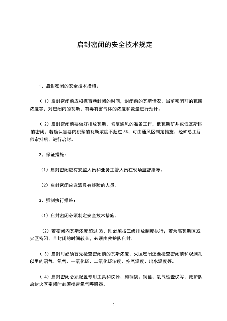 1、启封密闭的安全技术措施: