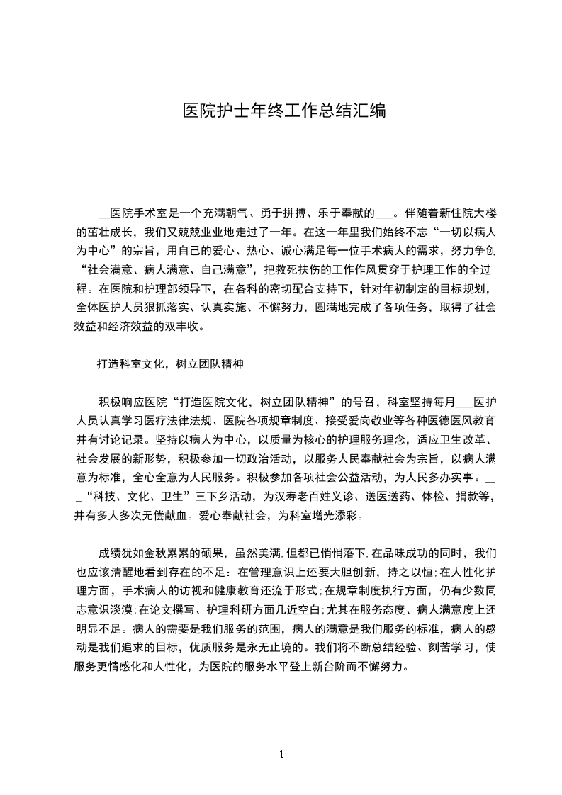 __医院手术室是一个充满朝气、勇于拼搏、乐于奉献的___。伴随着新住院大楼的茁壮成长,我们又兢兢业业地走过了一年。在这一年里我们始终不忘“一切以病人为中心”的宗旨,用自己的爱心、热心、诚心满足每一位手术病人的需求,努力争创“社会满意、病人满意、自己满意”,把救死扶伤的工作作风贯穿于护理工作的全过程。在医院和护理部领导下,在各科的密切配合支持下,针对年初制定的目标规划,全体医护人员狠抓落实、认真实施、不懈努力,圆满地完成了各项任务,取得了社会效益和经济效益的双丰收。