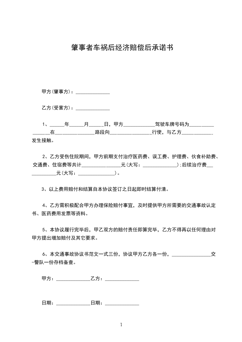 四、甲方收到乙方的上述人身损害赔偿费用后,不得以赔偿项目缺失、身体伤害严重、后续治疗发生其它并发症等等理由,向乙方继续索要赔偿或者向人民法院提起诉讼索取赔偿。乙方不得以上述赔偿项目多、赔偿金额多等理由,向甲方索要赔偿费用。如一方违约,违约方要向守约方支付违约金_____________元。
