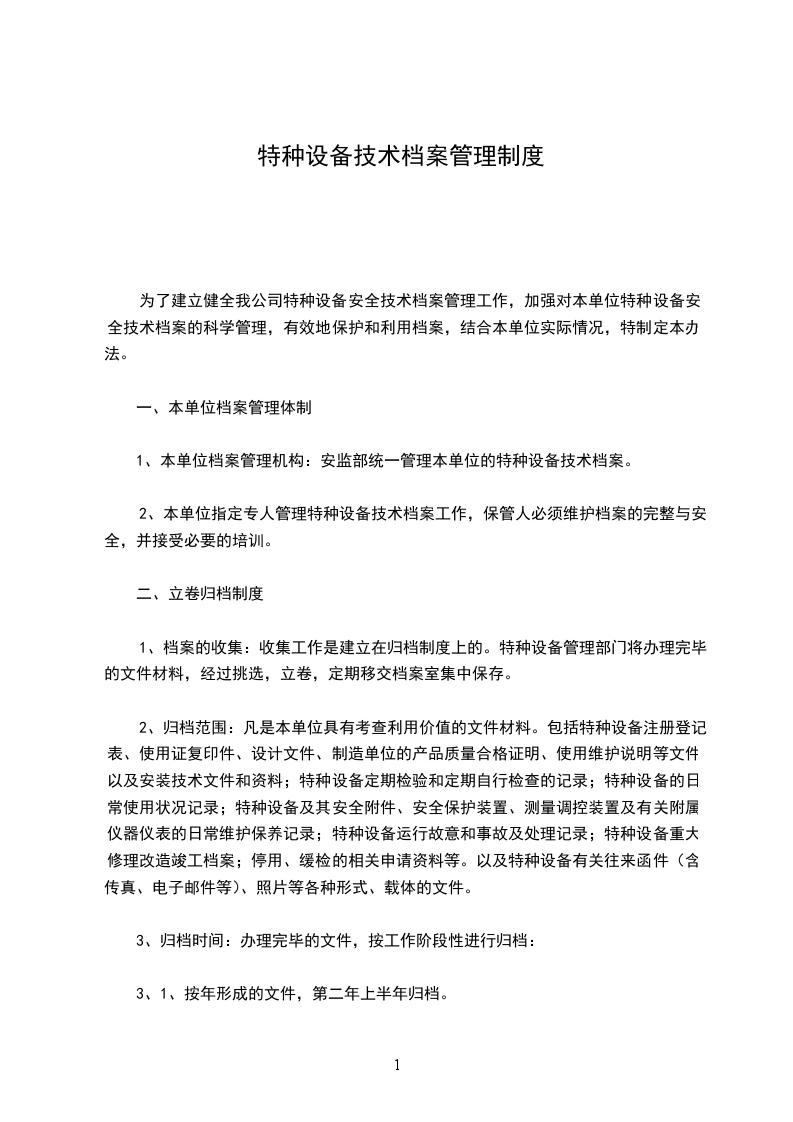 一、为保证特种设备技术档案和信息的完整性、各单位应制定特种设备安全技术档案管理制度。