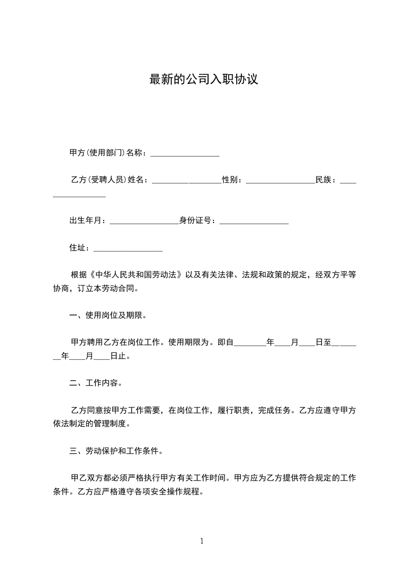 乙方(受聘人员)姓名:_________________性别:_________________民族:_________________