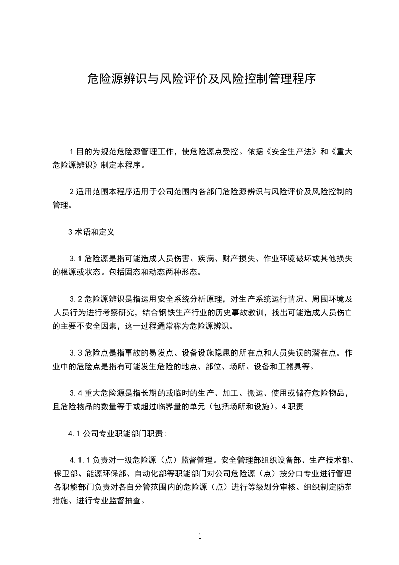 2适用范围本程序适用于公司范围内各部门危险源辨识与风险评价及风险控制的管理。