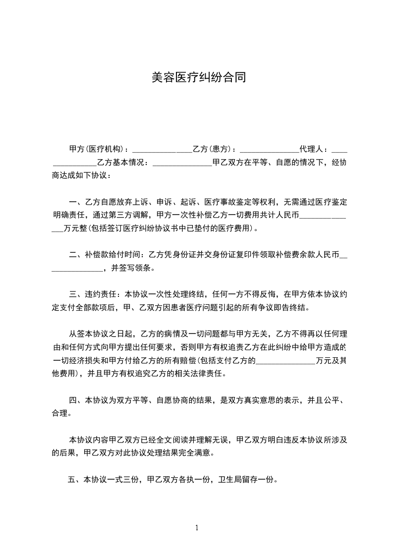 七、本协议经甲乙双方签字、盖章生效。协议文本一式三份,甲乙双方各执一份,报_____________卫生局一份。