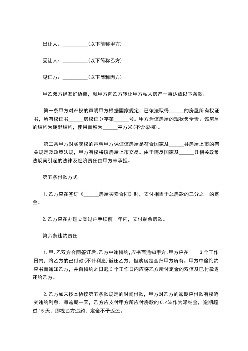 三、甲方转让房屋后,该房屋之附属从权利(如开发商赠与的阳台、花园等)相应转让给乙方;乙方即享有该房屋之所有权利,并在全部购房款付清之日,交接钥匙。