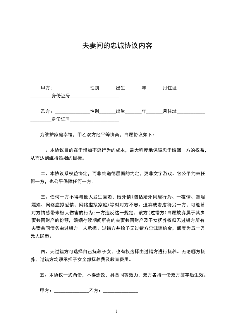 甲方、乙方系夫妻关系,为了共同维护良好、和谐的婚姻关系,甲乙双方在公平、自愿的基础上,根据国家相关法律、法规的规定,经协商一致,签订本协议,以资共同信守执行。