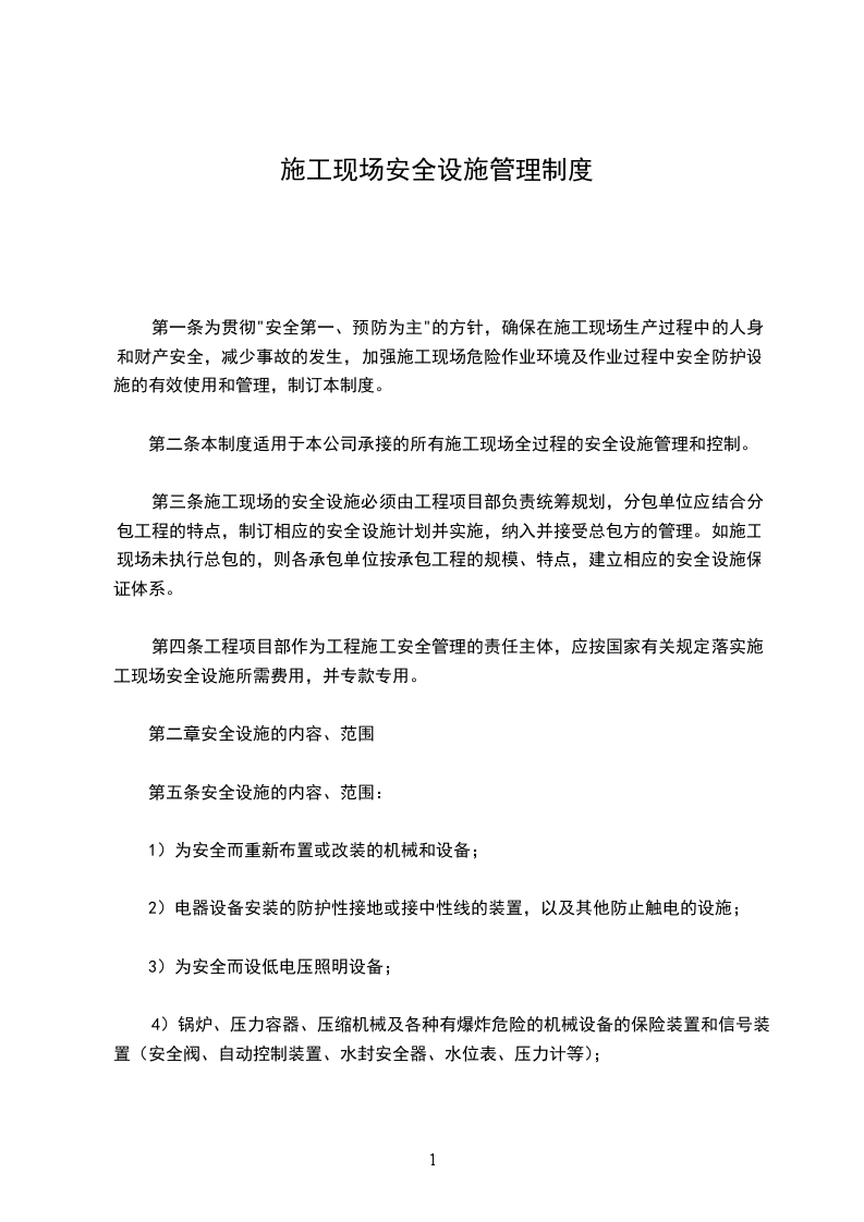 第二条本制度适用于本公司承接的所有施工现场全过程的安全设施管理和控制。