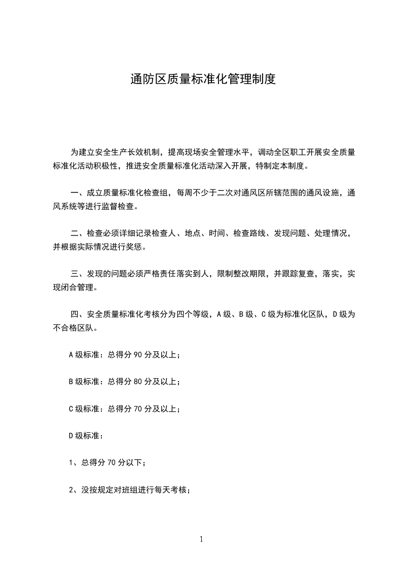 四、安全质量标准化考核分为四个等级,A级、B级、C级为标准化区队,D级为不合格区队。