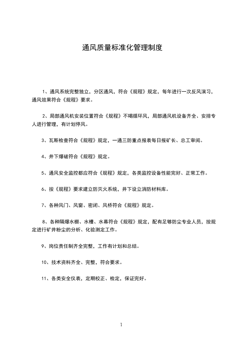 一、成立质量标准化检查组,每周不少于二次对通风区所辖范围的通风设施,通风系统等进行监督检查。