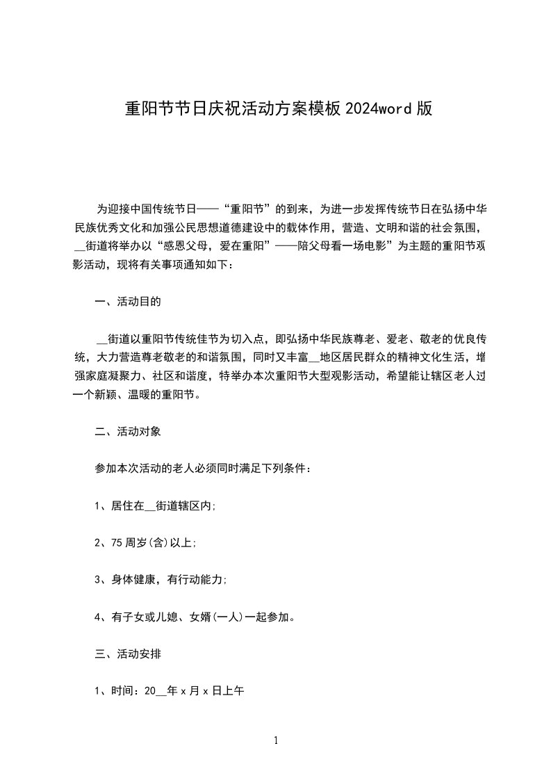 __街道以重阳节传统佳节为切入点,即弘扬中华民族尊老、爱老、敬老的优良传统,大力营造尊老敬老的和谐氛围,同时又丰富__地区居民群众的精神文化生活,增强家庭凝聚力、社区和谐度,特举办本次重阳节大型观影活动,希望能让辖区老人过一个新颖、温暖的重阳节。